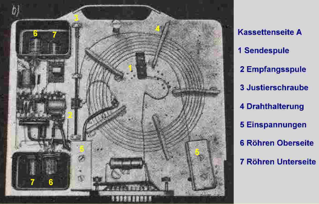 dualer Werte auf den Drähten entsprach. ~ 500 khz / s Temperaturschwankungen veränderten die Draht- längen und damit die Folgezeit. Eine Meßkassette in der Mitte des